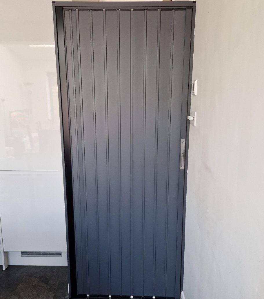 Fitted accordion door in closed position.