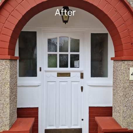 Exterior refurbishment involving brick facias and front door.