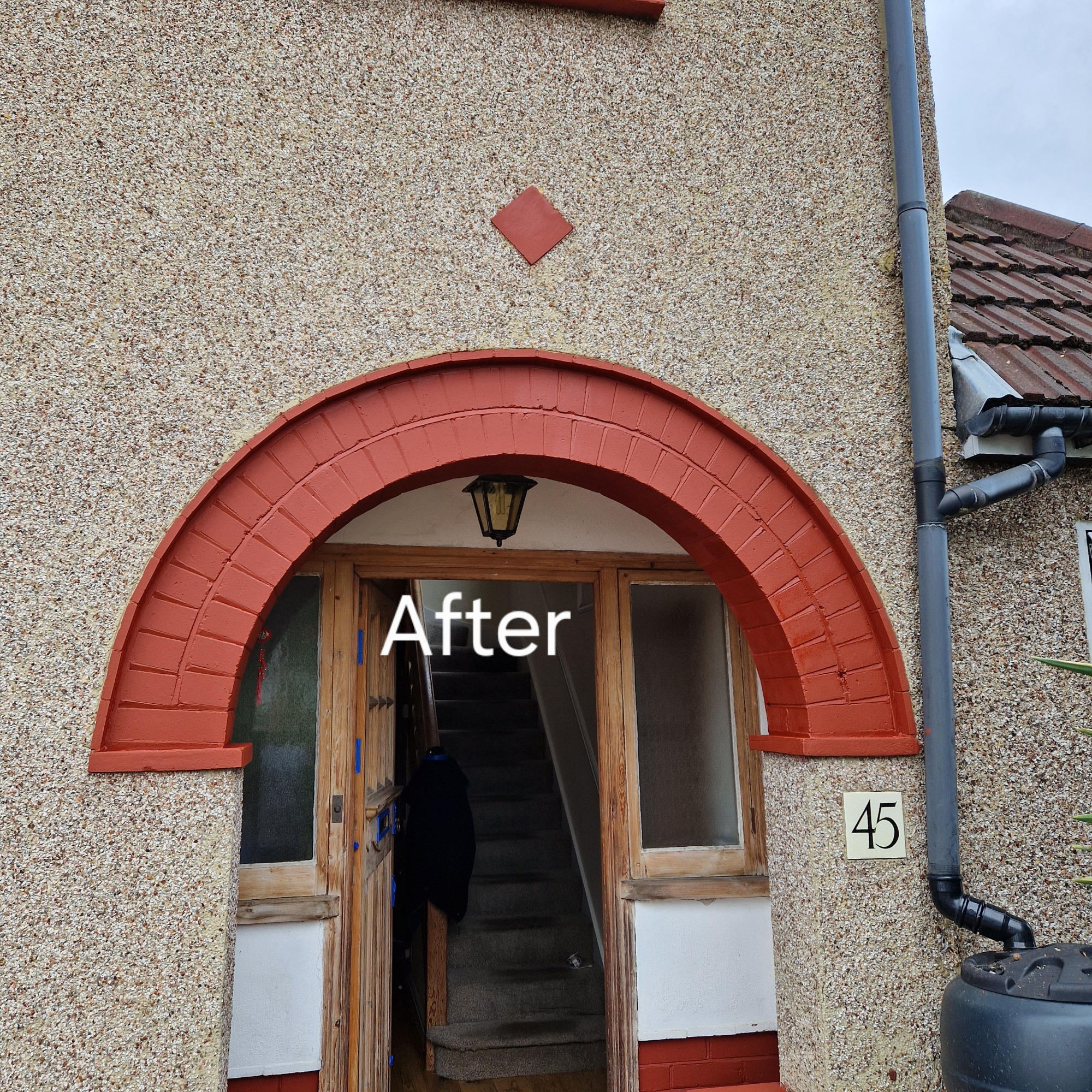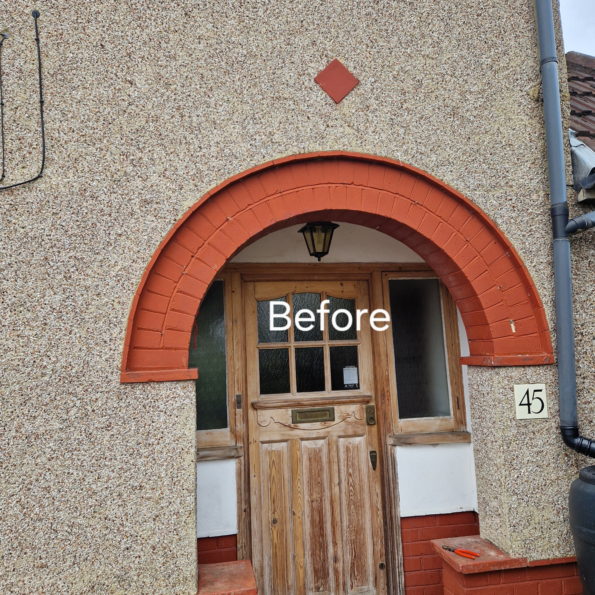 Exterior refurbishment involving brick facias and front door.